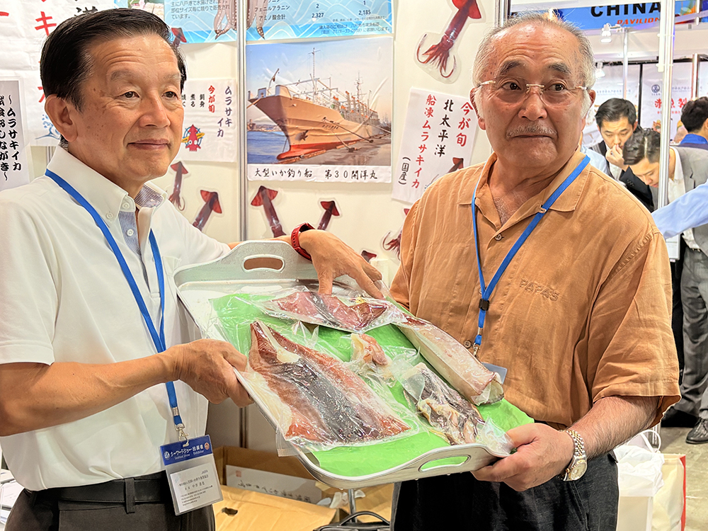 酷暑が続く2025年8月。全国いか釣り漁業協会はジャパンインターナショナルシーフードショーに出展しました。