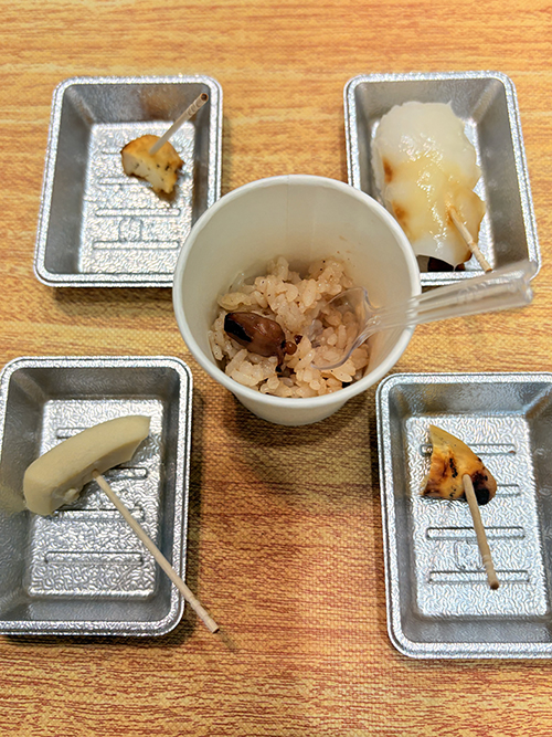 そして発売を控えた新商品の見本(発売日が決定次第、協会HPに購入方法等を掲載します)である「ムラサキイカ混ぜご飯の素(仮)」(開洋漁業株式会社)も、召し上がった方々から高い評価を頂きました。