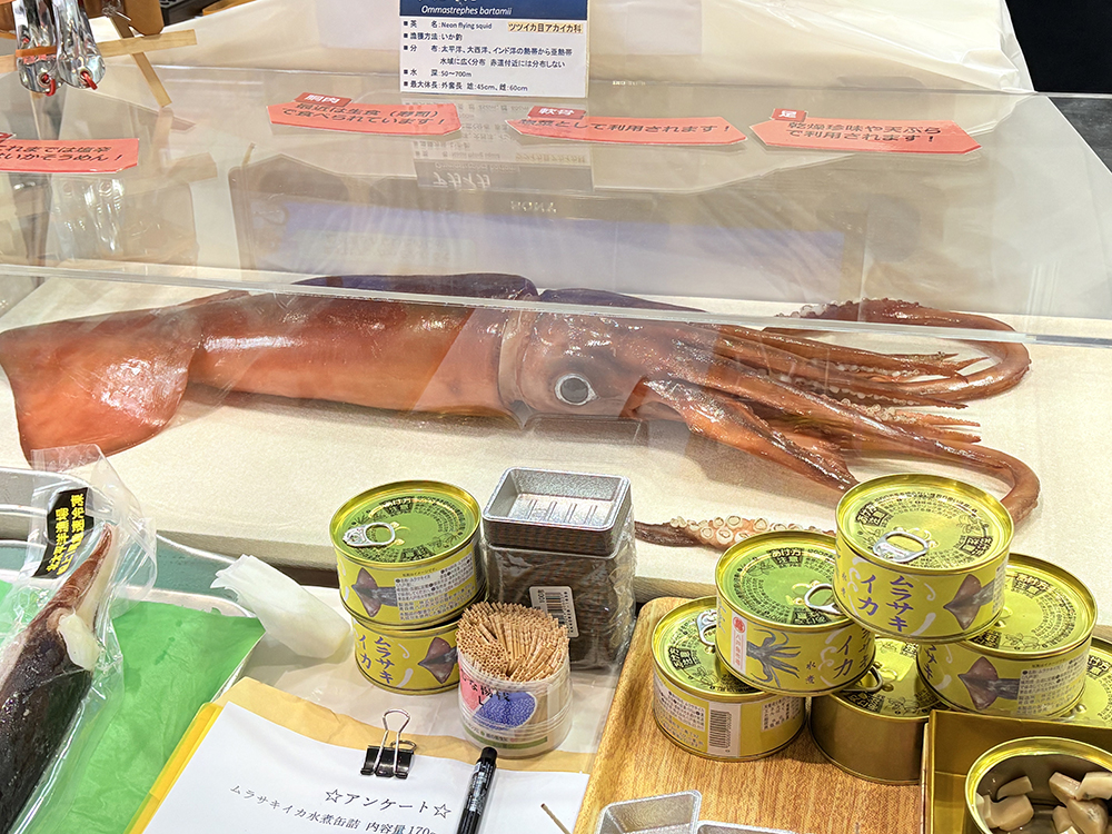 2023年と同様に開洋漁業(株)、八戸いか釣漁業振興協議会、(国研)水産研究・教育機構 開発調査センターなどに、展示や試食の応援をしていただきました。